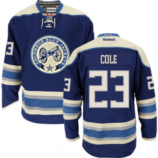 Men's Reebok Columbus Blue Jackets #23 Ian Cole Authentic Navy Blue Third NHL Jersey