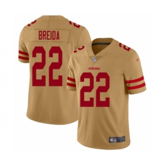 >Youth San Francisco 49ers #22 Matt Breida Limited Gold Inverted Legend Football Jersey