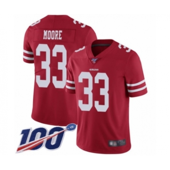 Men's San Francisco 49ers #33 Tarvarius Moore Red Team Color Vapor Untouchable Limited Player Super Bowl LIV Bound Football Jersey