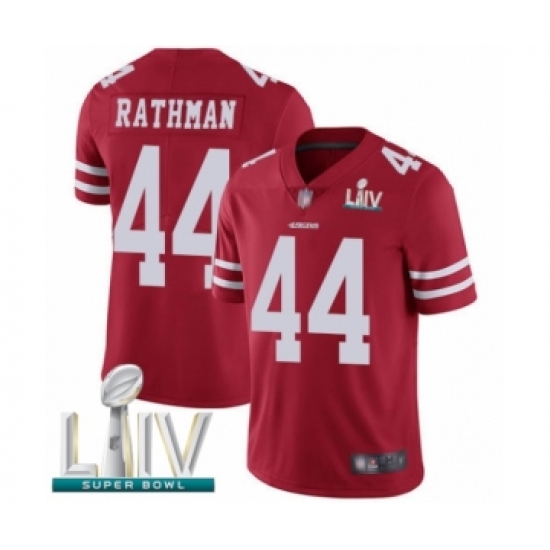 Men's San Francisco 49ers #44 Tom Rathman Red Team Color Vapor Untouchable Limited Player Super Bowl LIV Bound Football Jersey