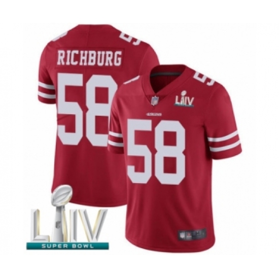 >Youth San Francisco 49ers #58 Weston Richburg Red Team Color Vapor Untouchable Limited Player Super Bowl LIV Bound Football Jersey