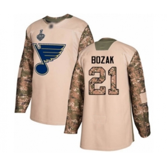 Youth St. Louis Blues #21 Tyler Bozak Authentic Camo Veterans Day Practice 2019 Stanley Cup Final Bound Hockey Jersey
