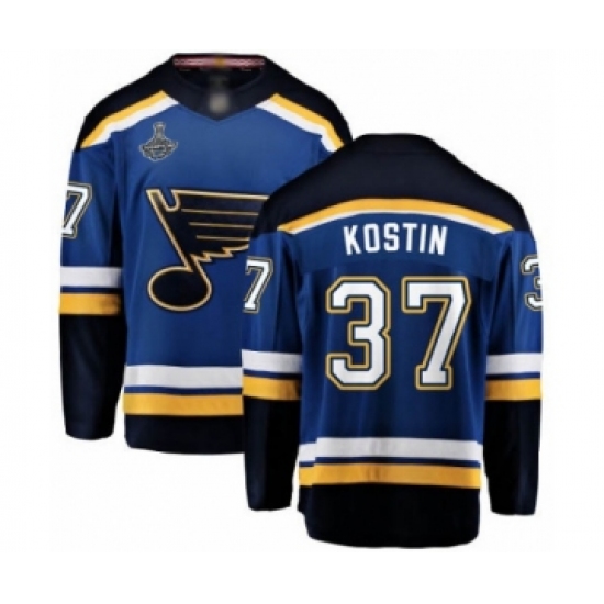 >Youth St. Louis Blues #37 Klim Kostin Fanatics Branded Royal Blue Home Breakaway 2019 Stanley Cup Champions Hockey Jersey