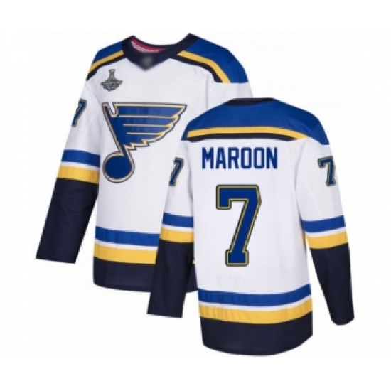 Men's St. Louis Blues #7 Patrick Maroon Authentic White Away 2019 Stanley Cup Final Bound Hockey Jersey