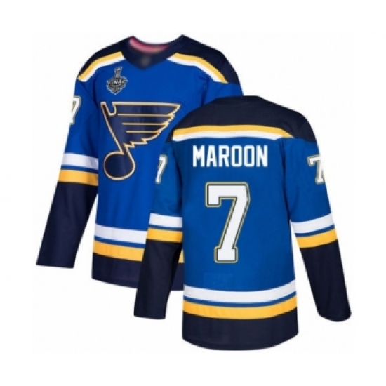 >Youth St. Louis Blues #7 Patrick Maroon Premier Royal Blue Home 2019 Stanley Cup Final Bound Hockey Jersey