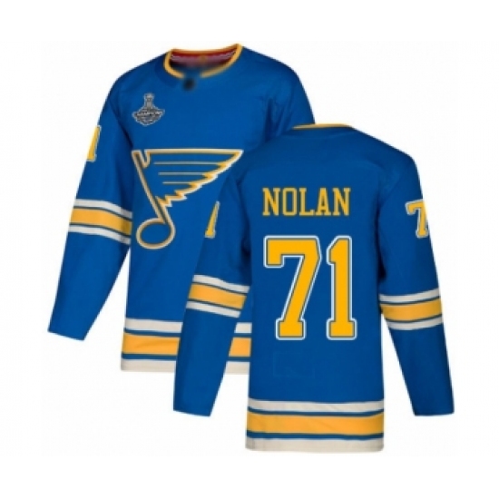 >Youth St. Louis Blues #71 Jordan Nolan Authentic Navy Blue Alternate 2019 Stanley Cup Champions Hockey Jersey
