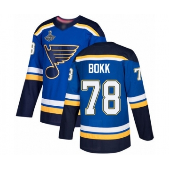 >Youth St. Louis Blues #78 Dominik Bokk Authentic Royal Blue Home 2019 Stanley Cup Champions Hockey Jersey