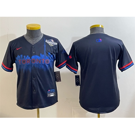 >Youth Toronto Blue Jays Blank Navy 2025 World Series City Connect Limited Stitched Baseball Jersey