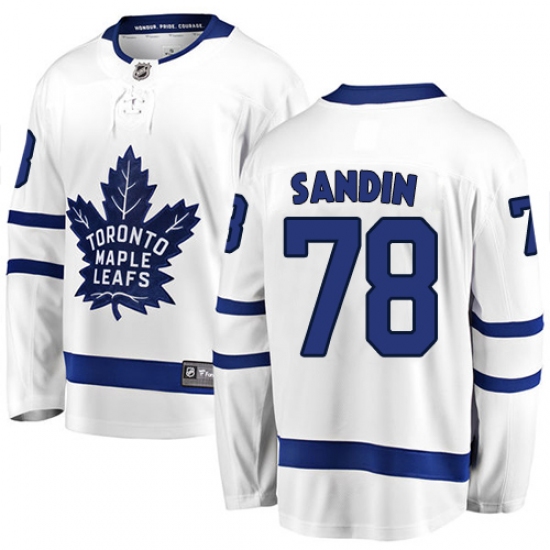 >Youth Toronto Maple Leafs #78 Rasmus Sandin Authentic White Away Fanatics Branded Breakaway NHL Jersey