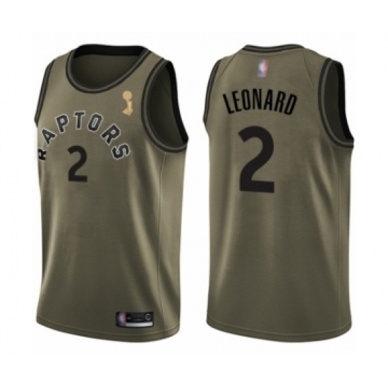 Youth Toronto Raptors #2 Kawhi Leonard Swingman Green Salute to Service 2019 Basketball Finals Champions Jersey