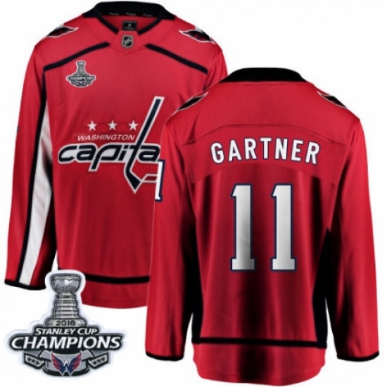 Men's Adidas Washington Capitals #11 Mike Gartner Premier Red Home 2018 Stanley Cup Final Champions NHL Jersey
