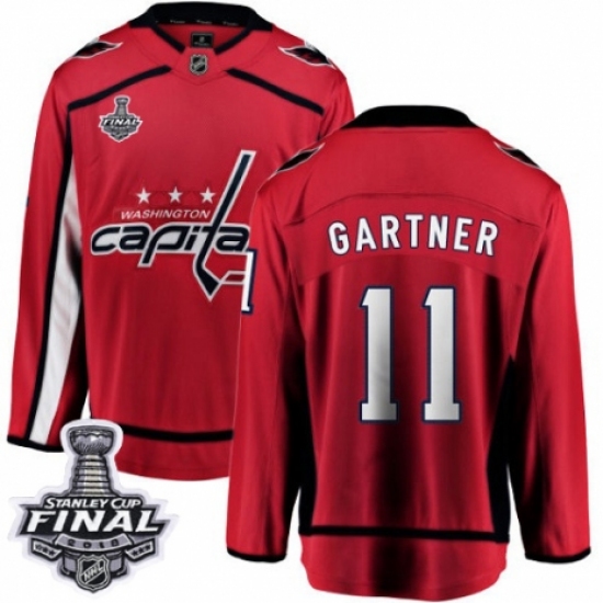 Men's Adidas Washington Capitals #11 Mike Gartner Authentic Red Home 2018 Stanley Cup Final Champions NHL Jersey