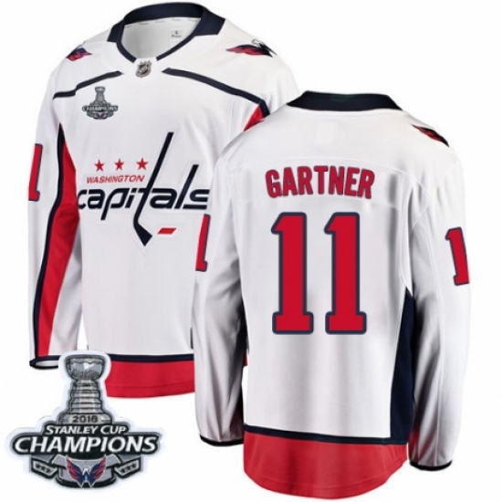 Men's Adidas Washington Capitals #11 Mike Gartner Authentic White Away 2018 Stanley Cup Final Champions NHL Jersey