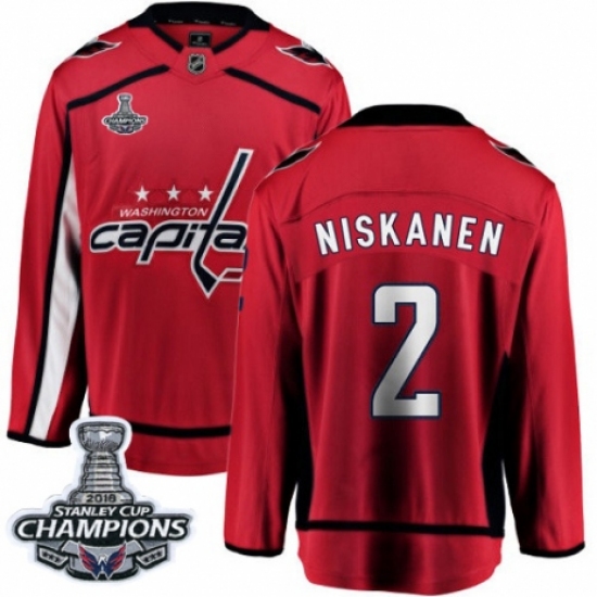 >Youth Washington Capitals #2 Matt Niskanen Fanatics Branded Red Home Breakaway 2018 Stanley Cup Final Champions NHL Jersey