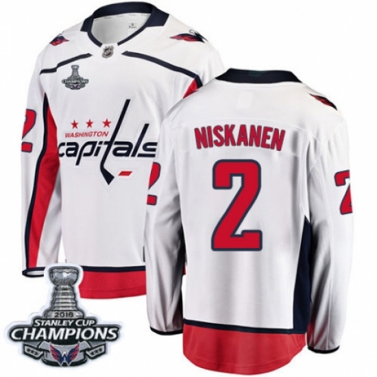 >Youth Washington Capitals #2 Matt Niskanen Fanatics Branded White Away Breakaway 2018 Stanley Cup Final Champions NHL Jersey