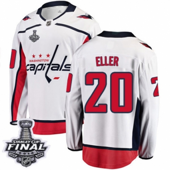 Men's Adidas Washington Capitals #20 Lars Eller Authentic White Away 2018 Stanley Cup Final NHL Jersey