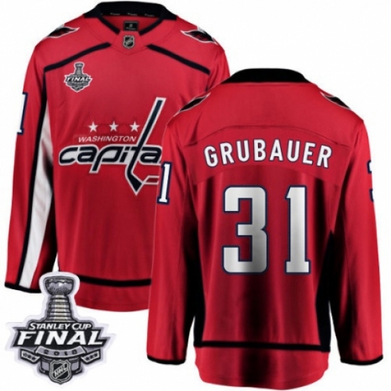 Men's Adidas Washington Capitals #31 Philipp Grubauer Authentic Red Home 2018 Stanley Cup Final Champions NHL Jersey
