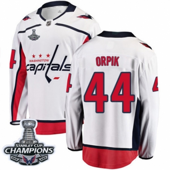 Men's Washington Capitals #44 Brooks Orpik Fanatics Branded White Away Breakaway 2018 Stanley Cup Final Champions NHL Jersey