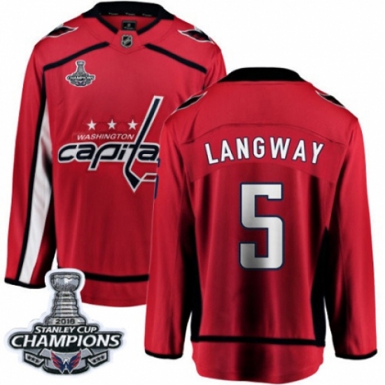 Youth Washington Capitals #5 Rod Langway Fanatics Branded Red Home Breakaway 2018 Stanley Cup Final Champions NHL Jersey