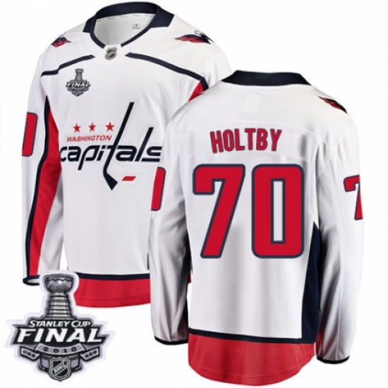 >Youth Washington Capitals #70 Braden Holtby Fanatics Branded White Away Breakaway 2018 Stanley Cup Final NHL Jersey