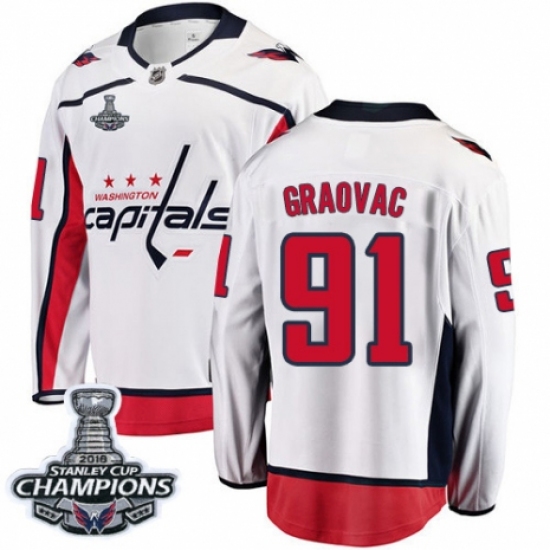>Youth Washington Capitals #91 Tyler Graovac Fanatics Branded White Away Breakaway 2018 Stanley Cup Final Champions NHL Jersey