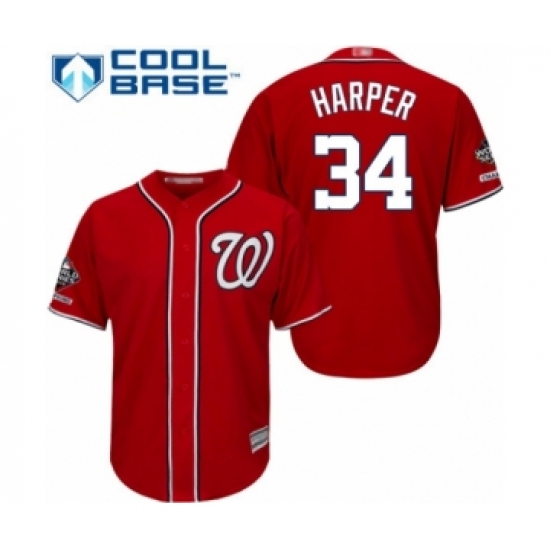 Youth Washington Nationals #34 Bryce Harper Authentic Red Alternate 1 Cool Base 2019 World Series Champions Baseball Jersey